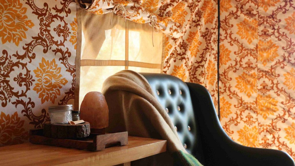 Elevated glamping rooms designed in a machan/treehouse-style, featuring double or twin beds, ensuite bathrooms, and a private sitting area for serene moments surrounded by lush greenery. Total 2 rooms – More information
